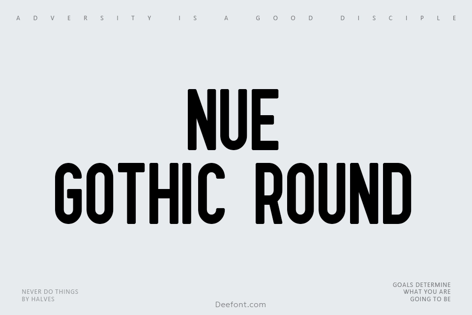 Nue Gothic Round is a mod of our classic Nue Gothic Regular font. We’ve expanded the D, H, and N, extended the cross bars on the E and F, and redrawn the K before applying a corner rounding to the whole font.