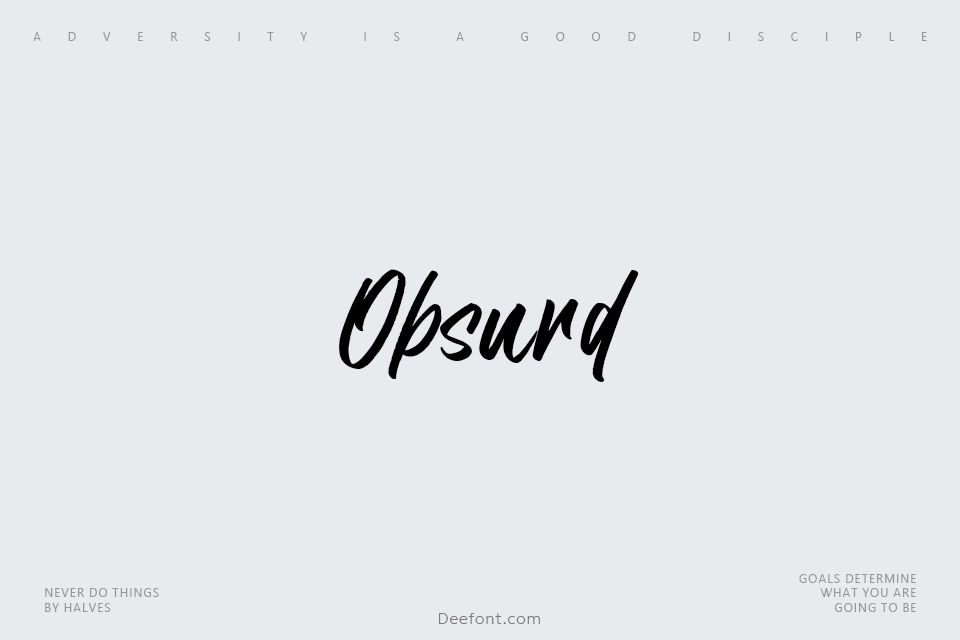 Obsurd is a charming handwritten script font featuring flowing, organic letterforms perfect for elegant typography and creative design projects. This versatile brush-based typeface excels in invitations, branding, social media graphics, and decorative applications. With its distinctive cursive style and natural pen-like quality, Obsurd brings a personal, artistic touch to any creative work, making it ideal for designers seeking authentic handwritten aesthetic without sacrificing professional polish.