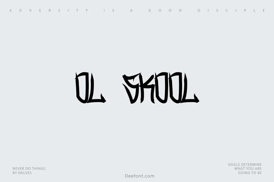 Ol Skool is a bold, graffiti-inspired font featuring sharp angles and dynamic strokes that capture the essence of street art. With its jagged edges and energetic design, this typeface delivers an edgy urban aesthetic perfect for posters, album covers, and branding projects requiring visual impact and artistic flair.
