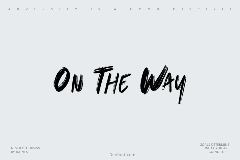 On The Way is a dynamic script brush font designed by Symphony Studio, featuring natural and energetic strokes perfect for creative designs. This handwritten-style typeface combines smooth curves with varied line weights, making it ideal for branding, invitations, and artistic projects that require a personal, organic touch.