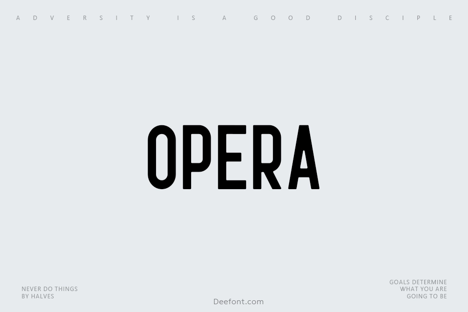 Opera is a versatile geometric sans-serif font family designed with clean, modern aesthetics and simple elements perfect for diverse creative projects. This all-caps typeface family features bold proportions and striking visual impact, making it ideal for headlines, branding, packaging, and graphic design work. With its contemporary appeal and geometric construction from basic shapes, Opera delivers clarity and authority to any project requiring a strong typographic presence. The font’s minimalistic design and uniform stroke widths ensure excellent readability across various applications, from web design to print materials.