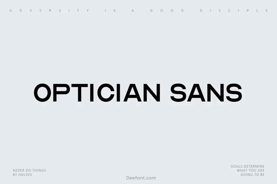 Optician Sans Font is a geometric sans-serif typeface inspired by the historical optotype letters used on eye charts worldwide, such as the Snellen and Sloan charts. Developed as a fully functional display font, it extends the original 10 optotype letters into a complete Latin alphabet, numbers, and select special characters. Designed for maximum legibility and clarity, Optician Sans is constructed on a strict 5×5 grid, reflecting its origins in visual acuity testing. Its clean, technical appearance makes it ideal for headlines, branding, and projects seeking a modern, distinctive look rooted in the history of optometry.
