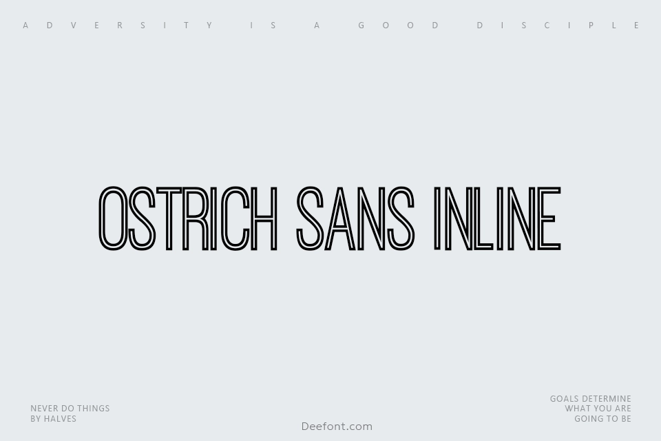 Ostrich Sans Inline is a contemporary sans-serif typeface featuring elegant inline letterforms with extended proportions. Designed by Tyler Finck for The League of Moveable Type, this versatile font combines geometric precision with organic fluidity, making it ideal for headlines, branding, logos, and creative editorial projects. Available in both regular and italic styles with comprehensive international character support.
