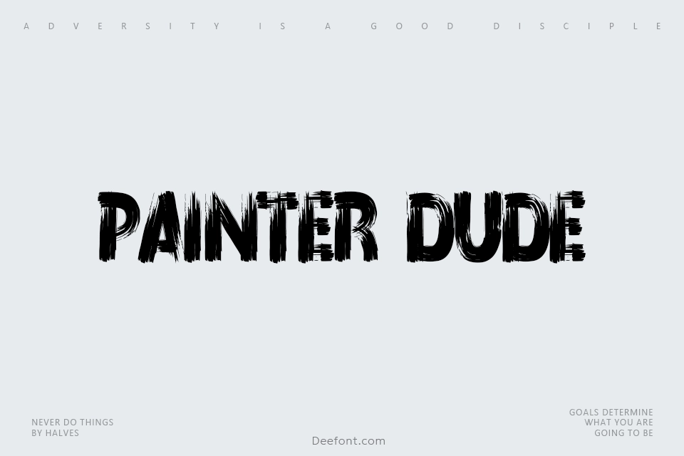 Painter Dude is a hand-brushed script font featuring bold, dynamic strokes that evoke creativity and energy. Designed for eye-catching headlines and expressive branding, Painter Dude blends artistic flair with powerful visual impact. This font is ideal for posters, logos, invitations, or any design that seeks a modern yet authentic handwritten aesthetic. With its energetic brush style, Painter Dude brings vibrancy and a personal touch to any creative project. Personal use is free; commercial use requires licensing.