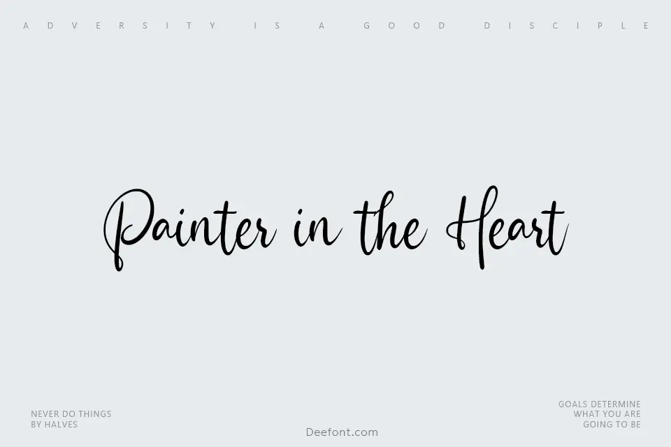 Painter in the Heart is an elegant handwritten script font that brings artistic flair to your design projects. With flowing, organic letterforms and a personal touch, this typeface captures the warmth of genuine hand lettering. Its semi-light strokes and smooth curves make it ideal for creating visually engaging greeting cards, invitation designs, decorative posters, and creative personal projects. The font’s authentic handwritten appearance adds character and emotion to any layout, making it perfect for designers seeking to infuse their work with an artistic, human-centered aesthetic.