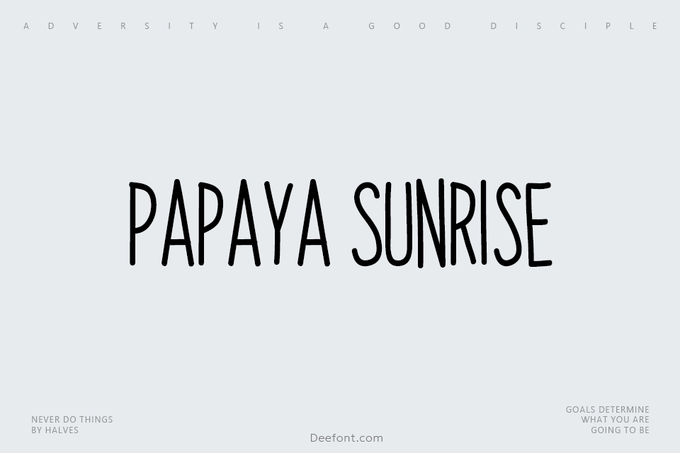 Papaya Sunrise is an all caps display font loosely based on childlike handwriting. Although unrefined in nature it is highly legible and perfect for instances that call for a little informality. Papaya Sunrise would work great in advertising, labels, or in a children’s book. Basic Latin, extended Latin, diacritics, Cyrillic, punctuation, and kerning are all included in the full version. The demo features basic Latin, Cyrillic, and limited punctuation.