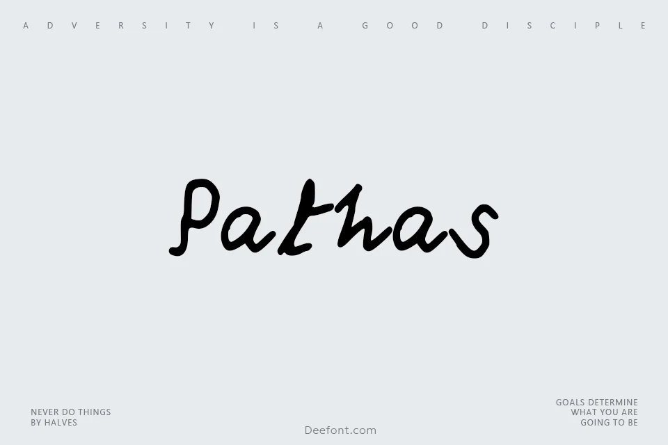 Pathas is a distinctive handwritten script font designed to capture the natural flow and authenticity of personal handwriting. With its relaxed letterforms and organic character, this font brings a genuine, human touch to your creative projects. Whether used for personal correspondence, artistic designs, or casual branding, Pathas delivers an authentic handwritten aesthetic that resonates with audiences seeking warmth and individuality in typography.