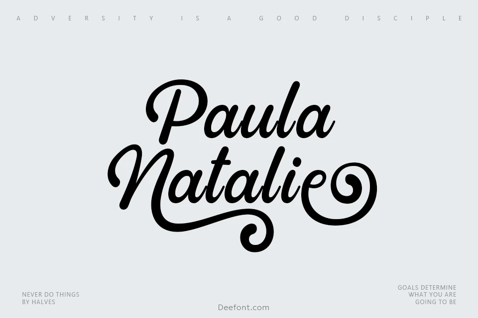 Paula Natalie Font, designed by Akhmad Reza Fauzi of Grezline Studio, is a cute and playful script typeface with a whimsical calligraphy style. Created to add a cheerful touch to headlines and logotypes, its handwritten appearance exudes love and positivity. This versatile font works well for a wide range of projects, including posters, quotes, product packaging, merchandise, and social media graphics. It features alternates, ligatures, and multilingual support. Paula Natalie is available free for personal use, but a commercial license is required for business purposes.