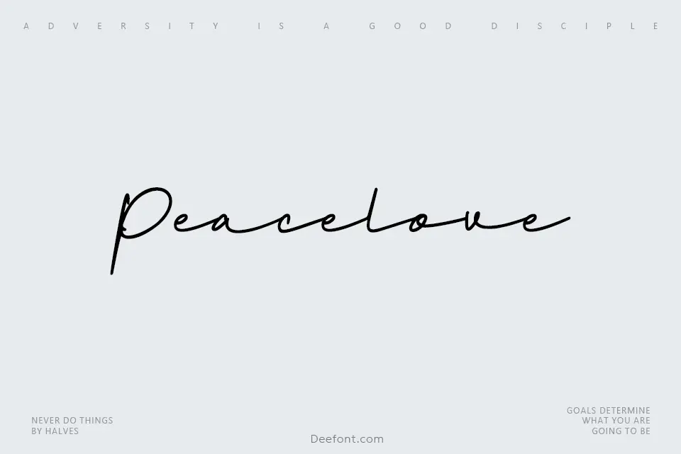 Peacelove Font is a graceful, flowing handwritten script typeface that combines elegant letterforms with a relaxed, contemporary charm. Featuring smooth strokes, organic curves, and slightly slanted characters, this font delivers a sophisticated yet approachable aesthetic. The design includes multiple weights—Regular, Medium, Bold, and a dedicated Calligraphy variant—each offering distinct visual impact. Ideal for wedding invitations, greeting cards, event posters, personal branding, and social media graphics, Peacelove brings warmth and authenticity to any creative project requiring handwritten elegance and natural expressiveness.