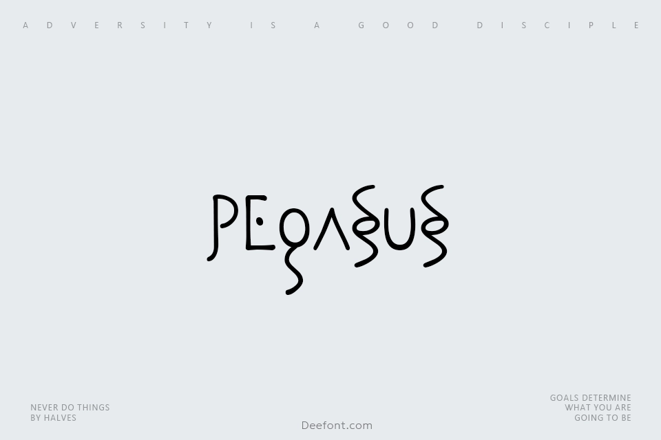 Pegasus is a distinctive foreign-look serif typeface with Roman and Greek characters, originally created using Fontographer 3.5 in 1992. This elegant font family features 247 glyphs and offers classic appeal for various creative applications, from formal documents to unique design projects.
