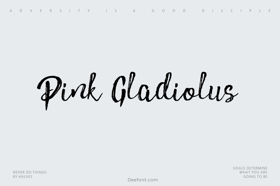 Pink Gladiolus is a captivating modern brush script designed by madeDeduk that brings elegance and movement to your creative projects. With dynamic strokes and versatile applications, this handwriting font seamlessly complements event invitations, branding ventures, logos, packaging, and social media graphics. Perfect for designers seeking contemporary flair and expressive typography that resonates with modern aesthetics and adds sophistication to visual creations.