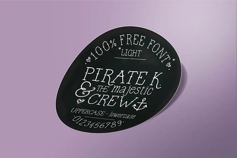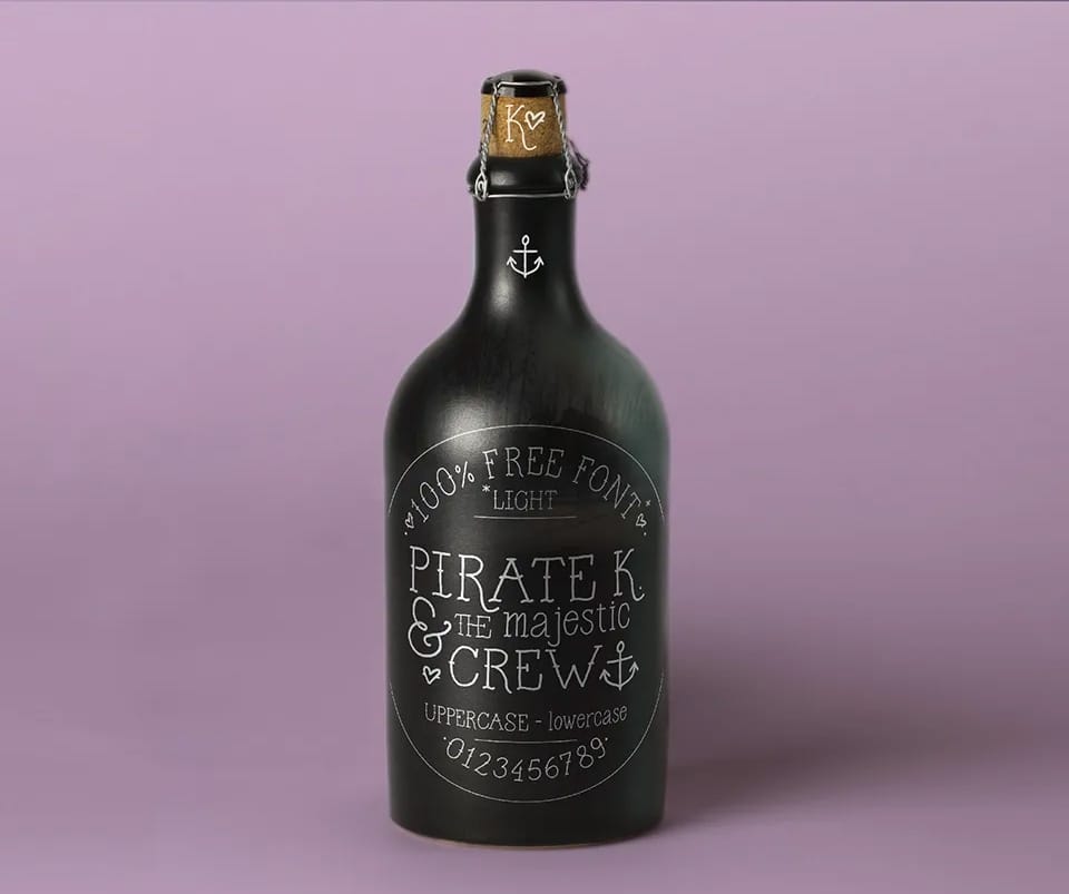 Pirate K. Font is a charming handcrafted typeface that captures the adventurous spirit of maritime exploration. This 100% free font features a distinctive hand-drawn quality with playful letterforms that evoke vintage sailor aesthetics. Pirate K. includes both uppercase and lowercase characters, complete number set, and decorative nautical elements like anchor symbols. Its slightly irregular baseline and weathered appearance create an authentic, treasure map feel perfect for themed projects, branding, and display typography. Ideal for creating adventure narratives, children’s books, themed restaurants, event invitations, or any design requiring a touch of seafaring nostalgia. The light weight version offers excellent readability while maintaining its distinctive character and whimsical charm.