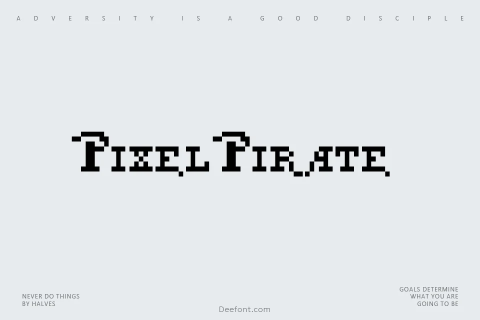 Pixel Pirate is a bold bitmap typeface delivering authentic retro pixel aesthetics reminiscent of classic arcade gaming and vintage digital design. Crafted with meticulous attention to 8-pixel resolution, this font masterfully combines pixelated charm with legible character forms, making it ideal for game design, digital art, posters, and nostalgic branding projects. Its dynamic construction reflects pirate-themed aesthetics while maintaining versatility across various creative applications, from web design to print media.