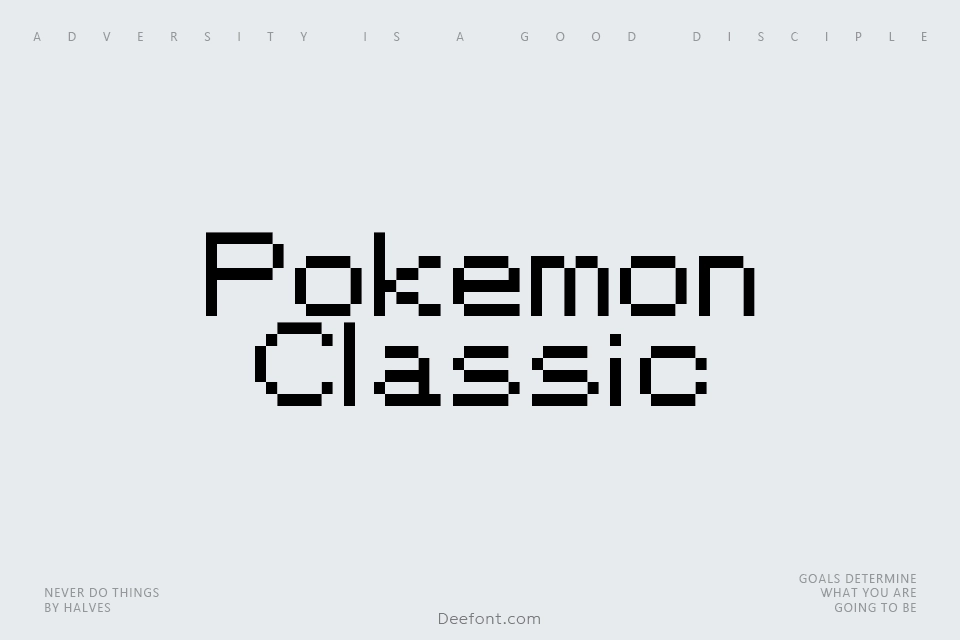 Pokemon Classic is a bitmap font inspired by the iconic typeface used in the first and second generation Pokémon games. With 577 glyphs supporting multiple languages including Latin, Cyrillic, and Greek characters, this retro-style font captures the nostalgic 8-bit aesthetic perfect for gaming projects, fan art, and creative designs. Its pixel-perfect letterforms and compact 8px size make it ideal for digital applications and vintage-themed typography.