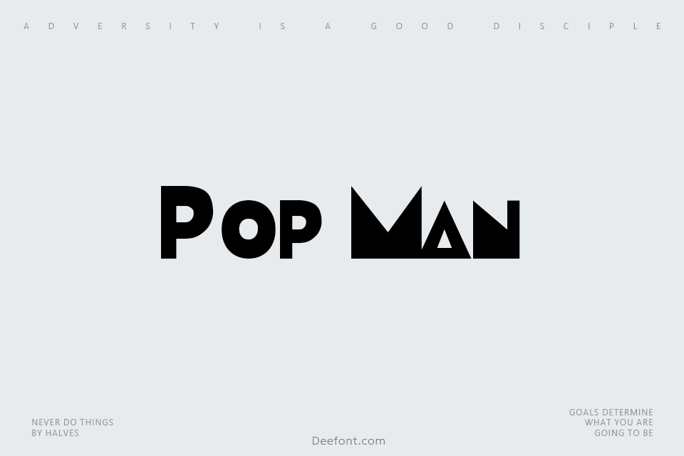 Pop Man is a vibrant and playful display typeface that captures a contemporary spirit with its distinctive rounded forms and dynamic energy. Designed with creative projects in mind, this font brings personality and charm to any typographic composition, perfect for eye-catching headlines, posters, branding materials, and decorative applications that demand visual impact and memorable character.