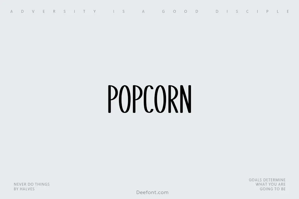 Popcorn is a charming handwritten script font with a casual, flowing aesthetic that brings personality to any creative project. Featuring smooth, expressive brush-like strokes and a semi-light weight, this typeface excels in display applications such as wedding invitations, social media graphics, poster designs, product packaging, and branding projects. The font’s whimsical character makes it particularly suited for creative and decorative purposes, delivering an authentic handwritten feel that captures attention and adds warmth to your designs.