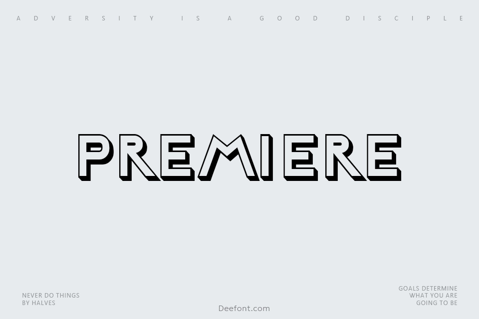 Premiere is a contemporary sans serif typeface crafted by Vladimir Nikolic that combines geometric precision with clean, modern aesthetics. This versatile display font features balanced proportions and smooth letterforms, making it ideal for branding, headlines, posters, and digital applications. With its minimalist design philosophy,Premiere delivers exceptional legibility while maintaining a sophisticated visual presence. The font’s sharp edges and well-defined characters ensure clarity across various sizes and mediums, from video titling to graphic design projects. Perfect for designers seeking a reliable, professional typeface with understated elegance.