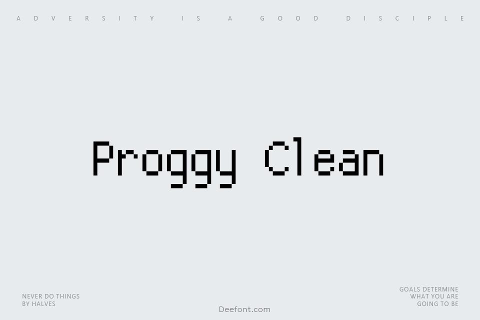 Proggy Clean is a monospaced bitmap typeface meticulously designed by Tristan Grimmer for programming and terminal applications. This fixed-width font features a clean, crisp aesthetic that excels in coding environments, offering excellent legibility at its intended point size. Engineered specifically for developers and system administrators, Proggy Clean combines precision and readability, making it an ideal choice for technical documentation, code editors, and command-line interfaces where clarity is paramount.
