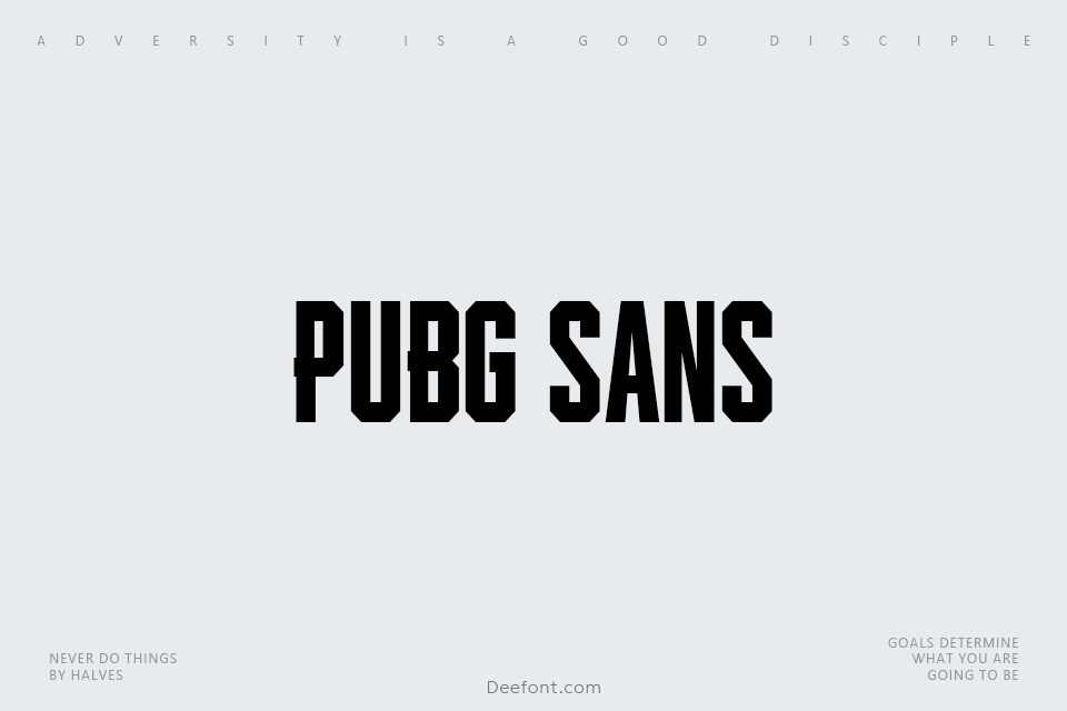 PUBG Sans Font is a bold and commanding display sans serif typeface inspired by the popular battle royale game PUBG. Featuring sleek, modern design with sharp edges and powerful strokes, it masterfully blends futuristic and military aesthetics. With clean lines and extra-condensed lettering, this versatile font is perfect for headlines, logos, branding materials, and gaming-related projects. Its eye-catching presence and strong visual impact make it an excellent choice for any design requiring edge and excitement in both print and digital media.