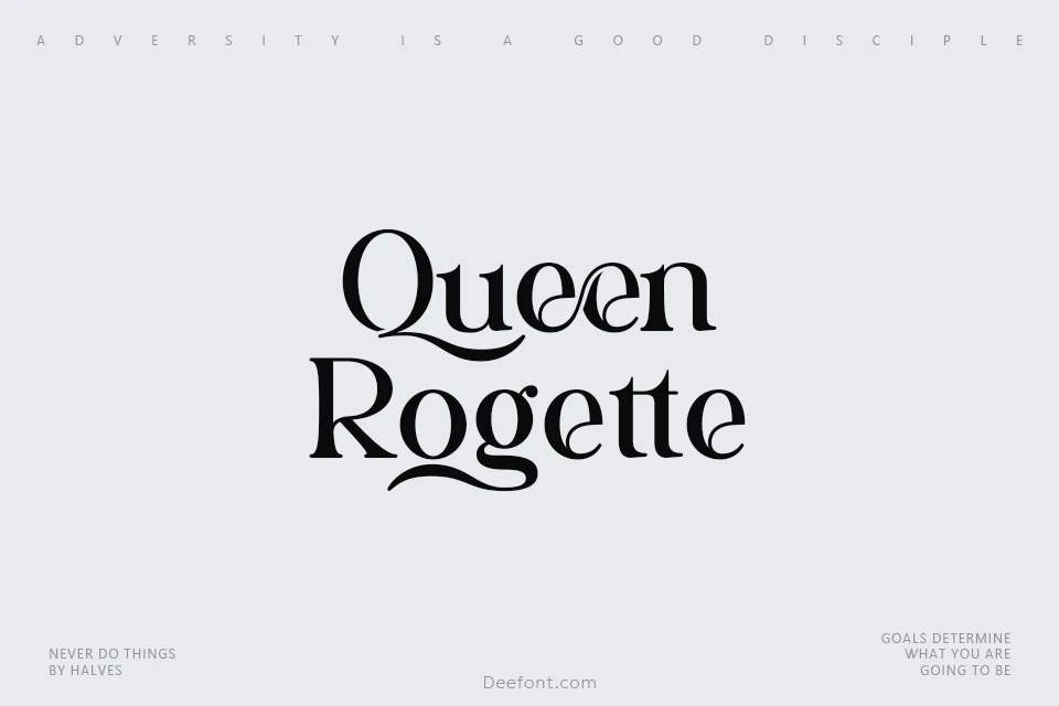 Queen Rogette Font is a sophisticated modern serif typeface that balances timeless elegance with contemporary design sensibilities. This luxurious font features graceful letterforms with distinctive swash details and refined contrast between thick and thin strokes. The carefully crafted serifs and smooth curves create a flowing rhythm that exudes femininity and confidence. Perfect for fashion editorials, luxury branding, wedding stationery, book covers, and high-end packaging, Queen Rogette commands attention while maintaining exceptional readability. Its versatile character set supports multiple languages and includes stylistic alternates for creative customization. Use Queen Rogette when your design requires a touch of refined glamour with a modern twist that speaks of understated luxury.