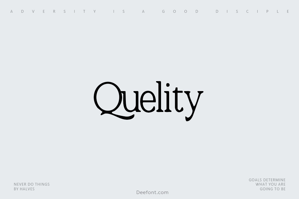 Quelity is a versatile crooked serif font family featuring natural and organic design elements. This distinctive typeface includes 16 carefully crafted fonts ranging from Light to Bold, each accompanied by matching italics for enhanced flexibility. With support for multilingual characters, numbers, and symbols, Quelity serves as an ideal choice for branding, logo design, classic editorial projects, and text applications. The font’s unique blend of modern and vintage curves creates an unconventional yet legible aesthetic perfect for contemporary creative work.