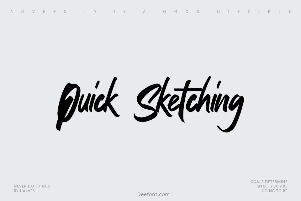 Quick Sketching Font is a dynamic handwritten typeface that captures the essence of authentic hand-drawn artistry with dramatic, organic brush strokes and imperfect letterforms. Created for designers seeking spontaneous, expressive typography, this display script excels in poster designs, creative headlines, artistic titles, and decorative applications. Its fluid movement and sketchy aesthetic add personality and charm to projects requiring a handmade feel, making it ideal for creative branding, event invitations, album artwork, and contemporary design work that values artistic authenticity over precision.