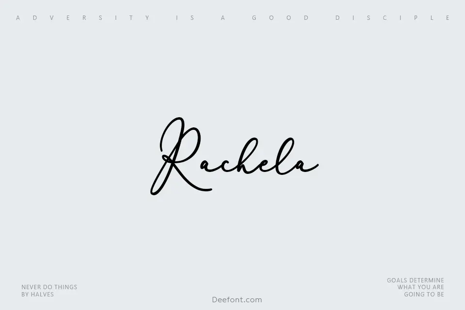 Rachela is a sophisticated handwritten script typeface that combines graceful, flowing strokes with contemporary elegance. Designed with fluid curves and refined letterforms, the font delivers an artistic yet refined aesthetic suitable for luxury branding, wedding invitations, editorial layouts, social media graphics, and decorative posters. Its expressive, organic style brings personality and warmth to headlines, logos, packaging, and greeting card designs while maintaining excellent readability in larger display sizes.