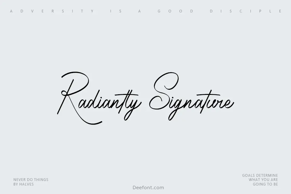 Radiantly Signature is an elegant handwritten signature font combining natural pen-written aesthetics with modern sophistication. This script typeface features flowing, smooth letterforms ideal for branding, logos, invitations, and social media headers. With its luxury feel and elegant curves, it works beautifully for product packaging, greeting cards, quotes, and premium design projects requiring authentic handwriting charm.