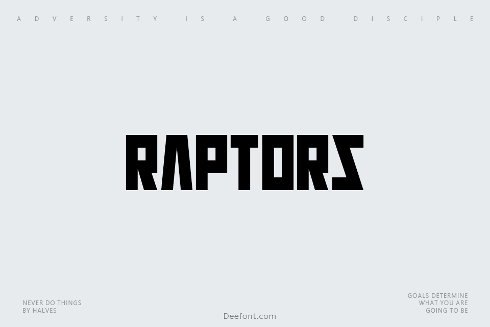 Raptors is a futuristic techno and sci-fi inspired display font designed with bold, geometric forms and pixelated elements. This typeface combines retro-futuristic aesthetics with contemporary design sensibilities, featuring a squarish character structure that delivers striking visual impact. Perfect for modern projects requiring cutting-edge typography, Raptors excels in headlines, posters, and digital media where commanding presence and technological appeal are essential. The font’s unique personality makes it an excellent choice for gaming, sci-fi themes, and tech-forward branding applications.