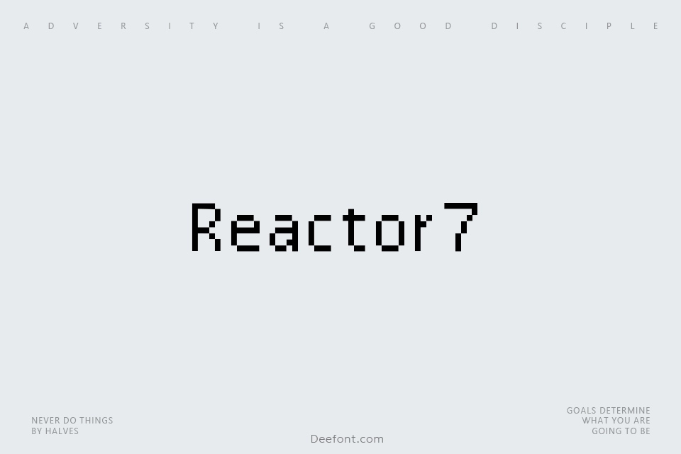 Reactor7 is a proportional sans-serif pixel font recreation based on the original main text font from the Sony PlayStation version of Final Fantasy VII. Created by Caveras, this display typeface features an expanded character set including complete Japanese hiragana and katakana alphabets, special characters, menu numbers, and diacritic variants. Perfect for retro gaming aesthetics and nostalgic design projects, it captures the authentic pixelated style of the classic 1997 video game.