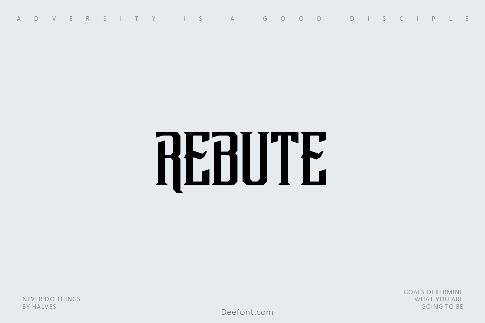 Rebute is a bold, sporty, and strong-looking all-caps typeface designed with a classic vintage touch. Originally conceived in 2013 and completely reworked to perfection, this versatile display font combines athletic strength with timeless retro aesthetics. Perfect for vintage, sports, and contemporary design projects, Rebute works excellently as a standalone statement font or complementary text element. With its medium weight and sturdy lettering featuring sharp lines and bold contrasts, it delivers reliable performance across branding, posters, business cards, invitations, and creative endeavors. Available in standard characters with full OpenType features and multilingual support in the premium version.