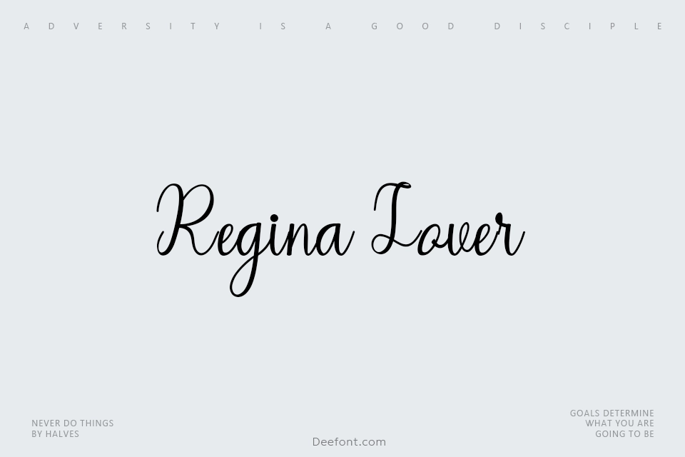 Regina Lover is an elegant and expressive script font that brings sophistication to your design projects. Featuring smooth, flowing letterforms with a handwritten touch, this typeface is perfect for wedding invitations, branding, greeting cards, and decorative typography. The font’s delicate curves and refined strokes create a feminine and romantic aesthetic, making it an excellent choice for designers seeking to add a personal and artistic flair to their creative work.