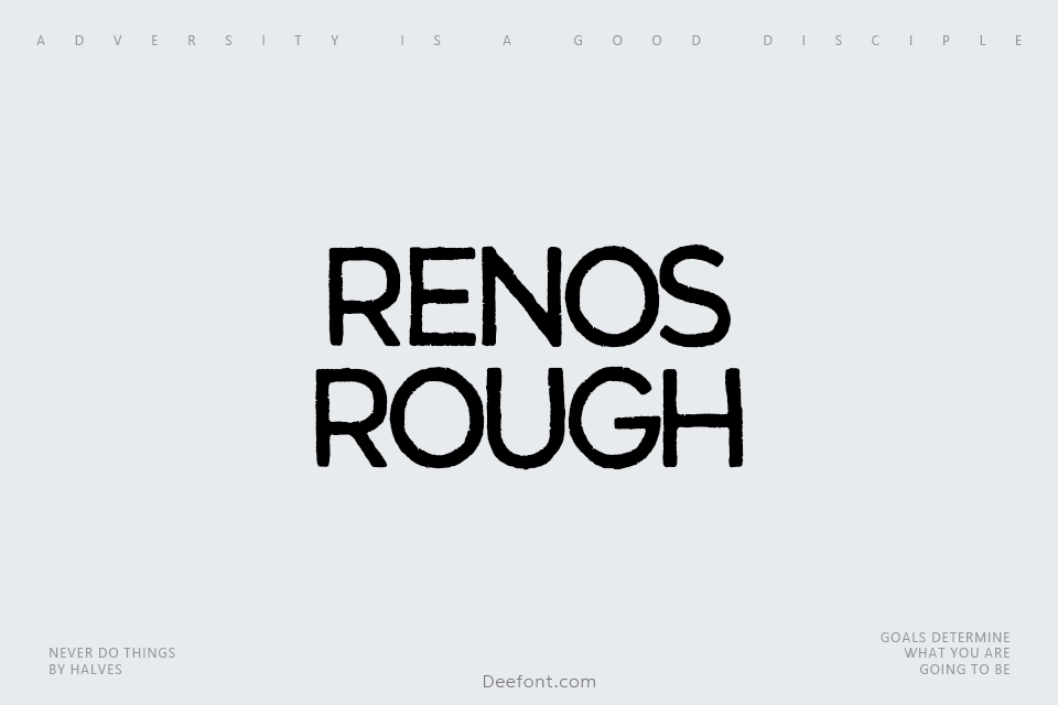 Reno Rough is a distressed display typeface with an eroded rustic look, yet a distinct geometric spirit. It is free for personal use. But if you would like to use it for any commercial purpose, please donate $18 via PayPal by clicking the ‘Donate to author’ button, located below the download link. You would receive a confirmation mail regarding your purchase of the license for the font. Renos Rough also has multiple weights which can be purchased here: https://www.creativefabrica.com/product/renos-rough/ref/106/