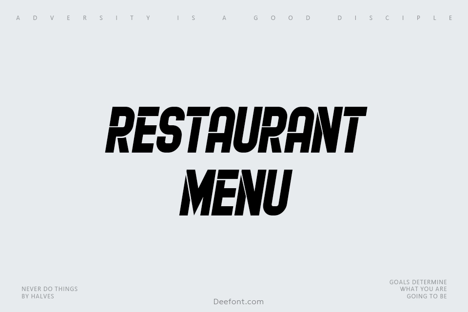 Restaurant Menu is a distinctive display font designed for menu applications and decorative purposes. Created by Vladimir Nikolic, this versatile typeface features four variants including Regular, Hollow, Book, and Book College versions. The font delivers elegant and professional typography ideal for restaurant branding, menu design, and hospitality projects. With its clean lines and contemporary aesthetic, Restaurant Menu combines readability with visual sophistication, making it perfect for businesses seeking to elevate their culinary presentation while maintaining clarity and impact in both print and digital mediums.