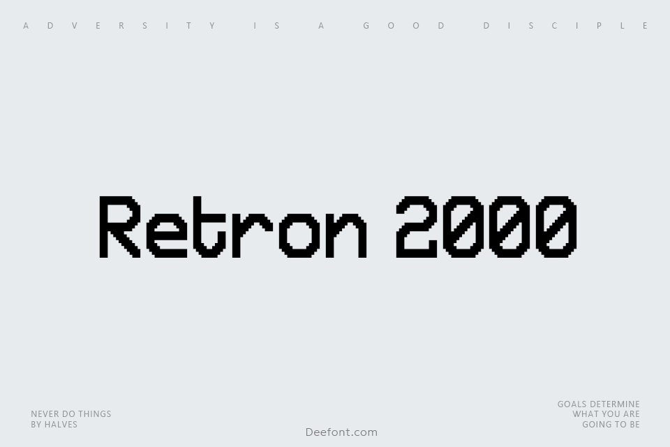 Retron 2000 is a striking bitmap font that delivers classic arcade nostalgia with modern applications. Designed with 27-pixel dimensions and a 1990s retrofuturistic aesthetic, this display typeface features bold, geometric letterforms that evoke early digital gaming interfaces and retro computing aesthetics. The pixelated design makes it ideal for creating eye-catching headlines, game interfaces, creative branding projects, and digital art that demands visual impact and vintage charm.