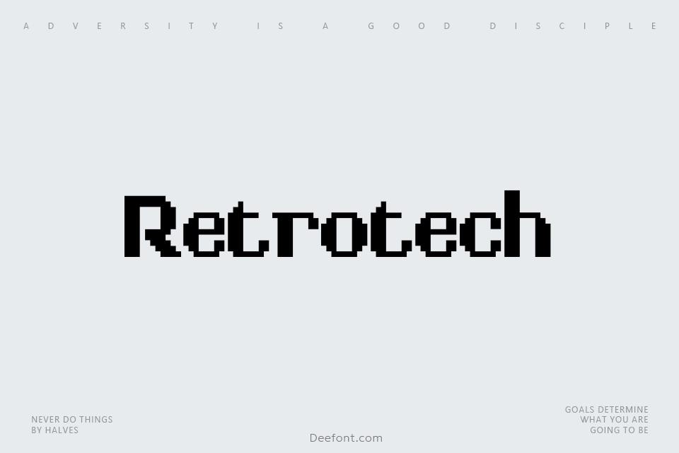 Retrotech is a bold and pixelated sans-serif font that brings retro gaming aesthetics to modern design. With its distinctive pixelated structure, this typeface excels at promoting technology and gaming equipment. Drawing inspiration from contemporary typography and classic pixel art, Retrotech revives pixel fonts for today’s creative standards. Perfect for digital projects, tech-focused branding, and eye-catching displays that demand attention.