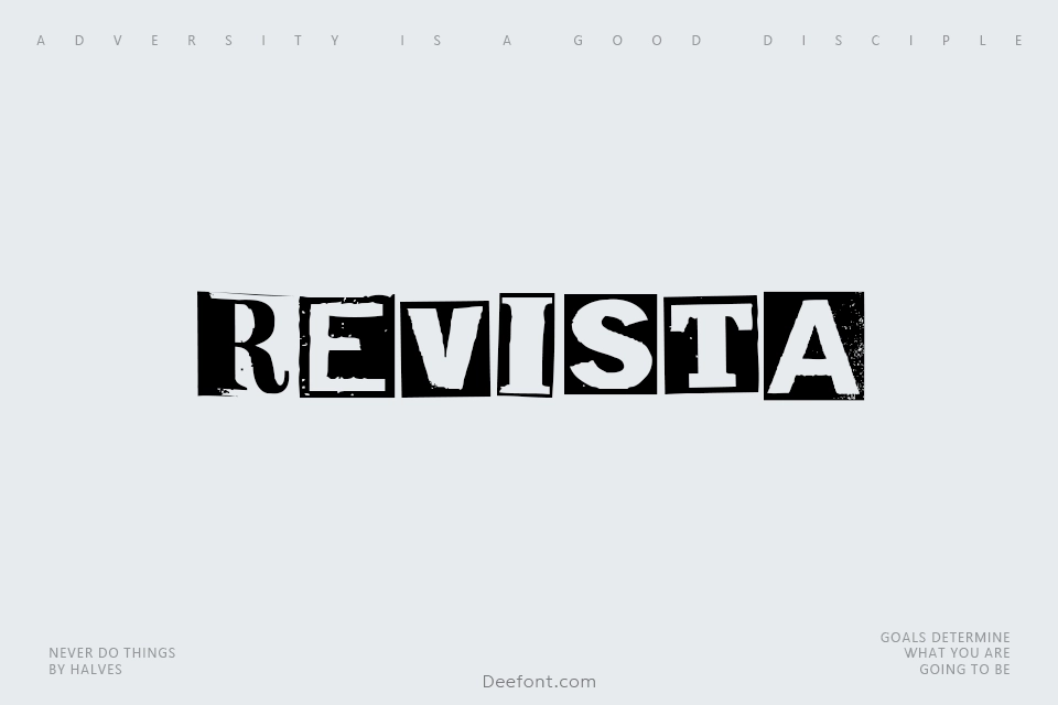Revista is a vibrant and eye-catching display font with an ornamental, decorative character. Designed for creative projects that demand visual impact, this typeface features a playful aesthetic perfect for posters, magazine layouts, titles, and branding applications. The font’s bold letterforms and unique styling make it ideal for designers seeking distinctive typography that captures attention while maintaining readability in display contexts.