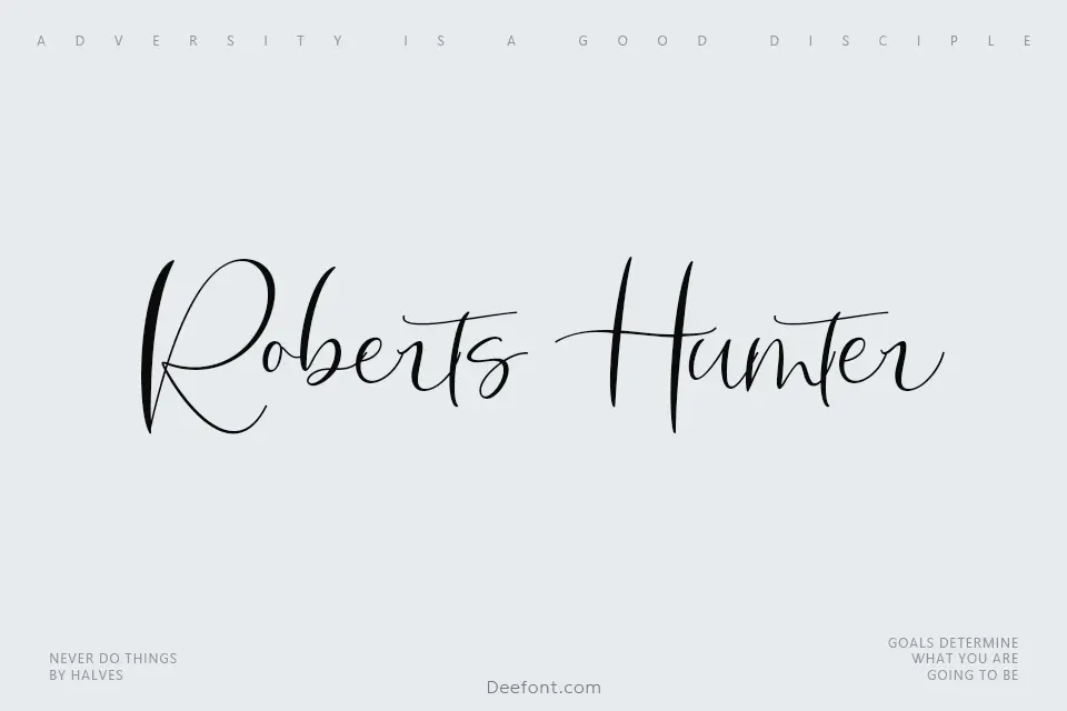 Roberts Humter Font is a visually striking typeface that blends modernity with an edgy flair. Featuring bold letterforms and sharp angles, it delivers a contemporary aesthetic that stands out in any design. This font is particularly suited for projects requiring a strong visual impact, such as branding, posters, or headlines. Additionally, Roberts Humter offers versatility with its calligraphic elements, making it ideal for elegant applications like wedding invitations and business cards. With its unique design and adaptability, this font is a powerful tool for adding character and sophistication to creative projects.