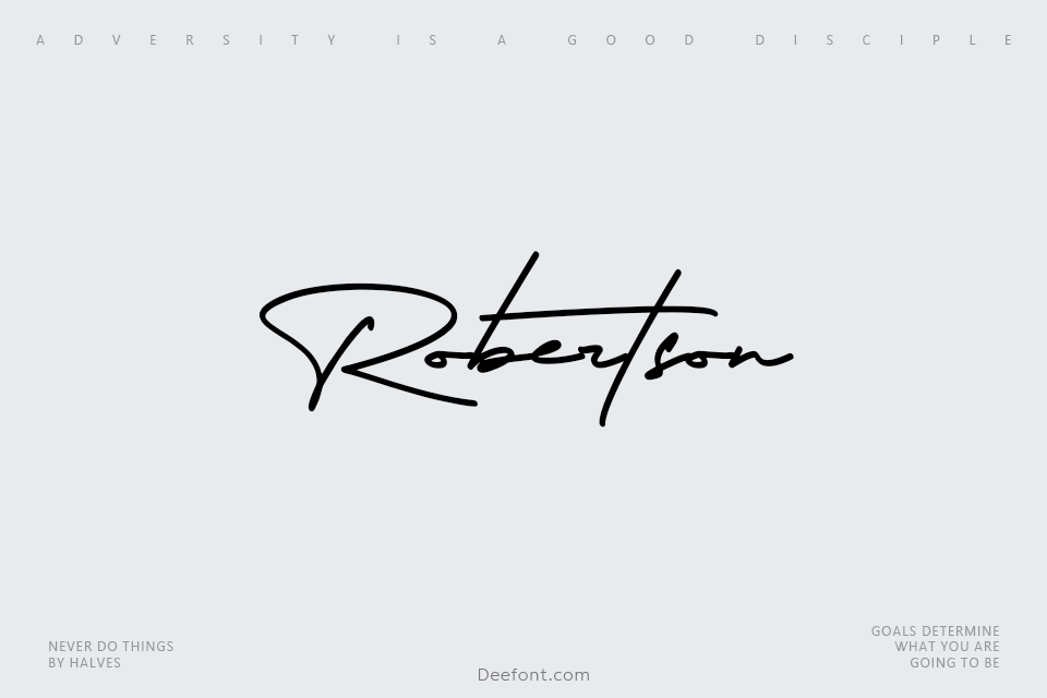 Robertson is an elegant handwritten script font featuring flowing cursive letters with a natural calligraphy feel. Its distinctive swashes and balanced letterforms make it perfect for wedding invitations, branding, greeting cards, and creative social media designs. This stylish typeface combines classical penmanship with modern sophistication, offering an authentic handwriting aesthetic that adds a personal touch to any design project without sacrificing readability or elegance.