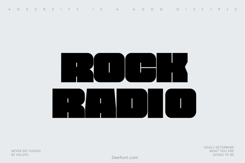 Rock Radio Font is a charismatic, ultra-bold sans serif typeface designed to make a strong visual impact. Featuring an extra-expanded width and geometric shapes, this font is perfect for projects that demand attention-such as posters, album covers, branding, apparel, merchandise, and social media graphics. Available in both regular and slant styles, Rock Radio also includes ligatures and multilingual support, making it versatile for a wide range of creative uses. Its bold, energetic character is ideal for creating a loud statement and amplifying your design’s presence.