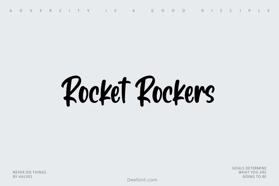 Rocket Rockers is a bold, energetic handwritten display font that brings creative flair to any project. Characterized by thick strokes, playful curves, and dynamic rounded edges, it delivers a friendly, casual aesthetic perfect for headlines, logos, invitations, posters, branding materials, social media posts, advertisements, and product packaging. With 240 characters supporting multilingual use, this versatile typeface combines expressiveness with readability, making it ideal for projects requiring a fun, informal, and creative touch that captures attention and conveys personality.