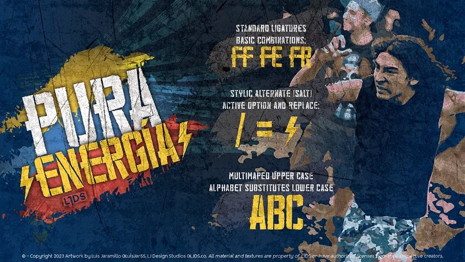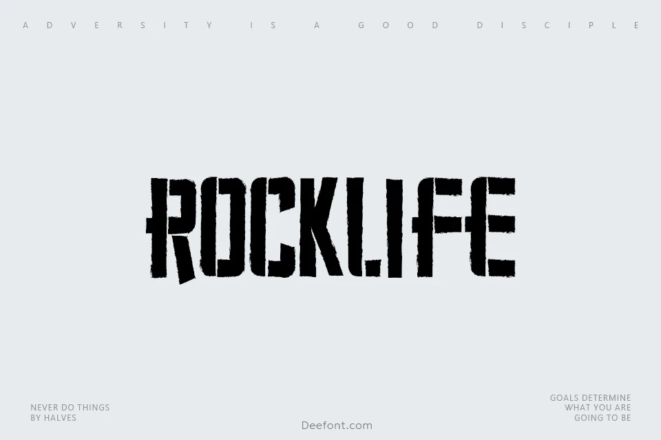 Rocklife Font is a bold display stencil typeface with a monumental spray paint detail, designed to evoke the energy and culture of rock music. Its grunge-inspired aesthetics make it perfect for music, event posters, and creative branding that demands a striking, rebellious look.