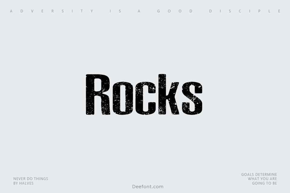 Rocks is a distinctive display font with an eroded, distressed aesthetic that features thick, irregular edges and a rugged appearance. Created by Billy Argel in 2019, this font excels at adding character and personality to headlines, posters, and eye-catching designs. The typeface combines bold forms with textured, weathered styling, making it ideal for creative projects that demand visual impact and contemporary flair.