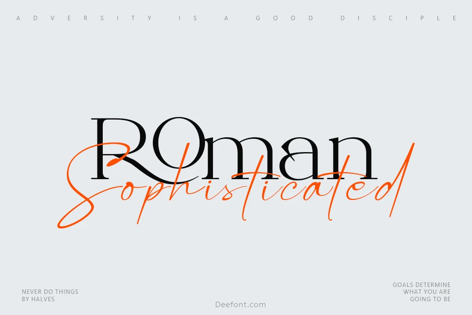 Roman Sophisticated Font Duo is a luxurious typeface package combining a signature script and a serif font, perfectly paired for sophisticated design projects. This elegant duo features OpenType capabilities with ligatures, alternates, numbers, and punctuation marks, supporting multiple languages. The versatile font pair is ideal for creating high-end designs including headings, logos, branding materials, magazines, product packaging, and invitations.