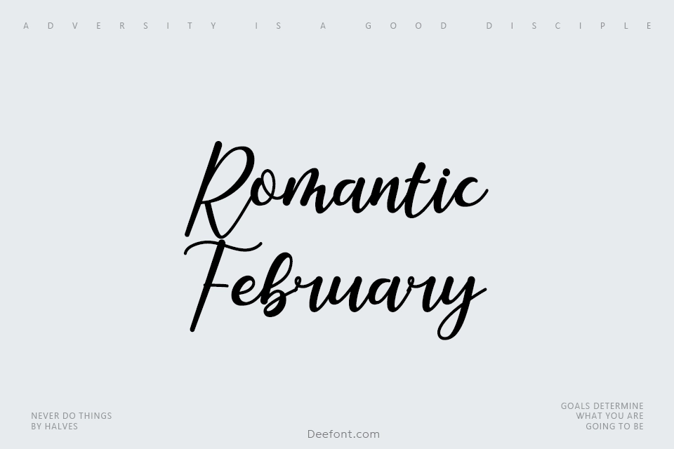 Romantic February is a beautiful romantic script font designed for special occasions. This elegant handwritten typeface features flowing letterforms and decorative swashes, perfect for valentine, wedding, invitation, heading, cover, poster, logos, quotes, and product packaging. It comes with extensive alternate characters, multilanguage support, and works beautifully for both professional and personal creative projects seeking a heartfelt and romantic touch.
