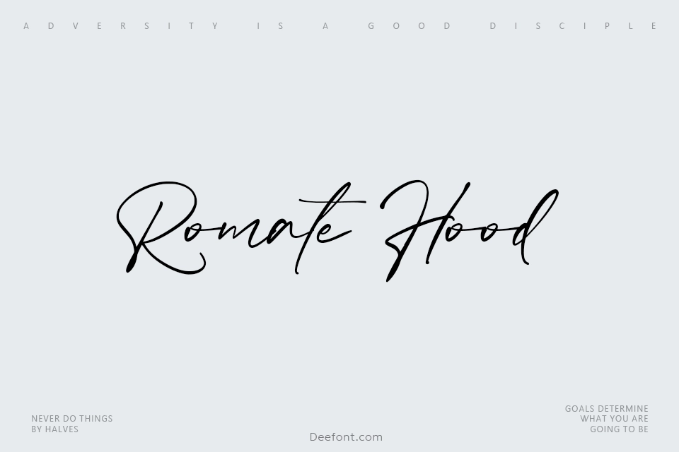 Romate Hood is an elegant and contemporary handwritten script font designed by Vultype Co. This minimalistic script typeface features beautiful ligatures and alternates inspired by luxury fashion aesthetics. Perfect for magazine titles, wedding invitations, photography designs, restaurant menus, apparel branding, and product packaging, Romate Hood combines modern elegance with authentic handwritten calligraphy to add a unique, sophisticated look to your creative projects with its 211 carefully crafted glyphs and OpenType features.