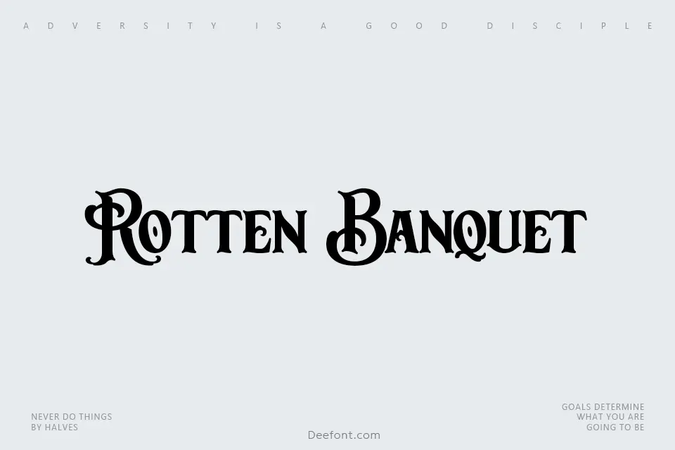 Rotten Banquet Font, our first victorian display font. This font inspired by 1800s typography design with some modern touch at it. We made this font without too much swashy efefct on the letterform. Just gave it two bold ripple floral effect at the tail is enough. So this font will more readable and not too complicated thus you could make any kind of projects with this font. In the preview we give you a sample ideas. We made it with one style design for the continuity but of course you could make your own style display for your own project purposes. This font contained with 370+ total glyphs. Each uppercase and lowercase have their own stylistic alternate at least one.