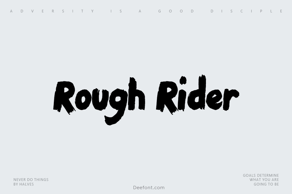Rough Rider is a bold script and brush typeface created by designer Jonathan S. Harris. This dynamic font features a handcrafted, distressed aesthetic that brings raw character and energy to any design project. Perfect for illustrative titles, logotypes, and impactful display text, Rough Rider combines rugged charm with contemporary style. Originally developed for logo design purposes, the typeface has expanded to include a comprehensive character set suitable for creative ventures requiring distinctive, authentic visual impact.