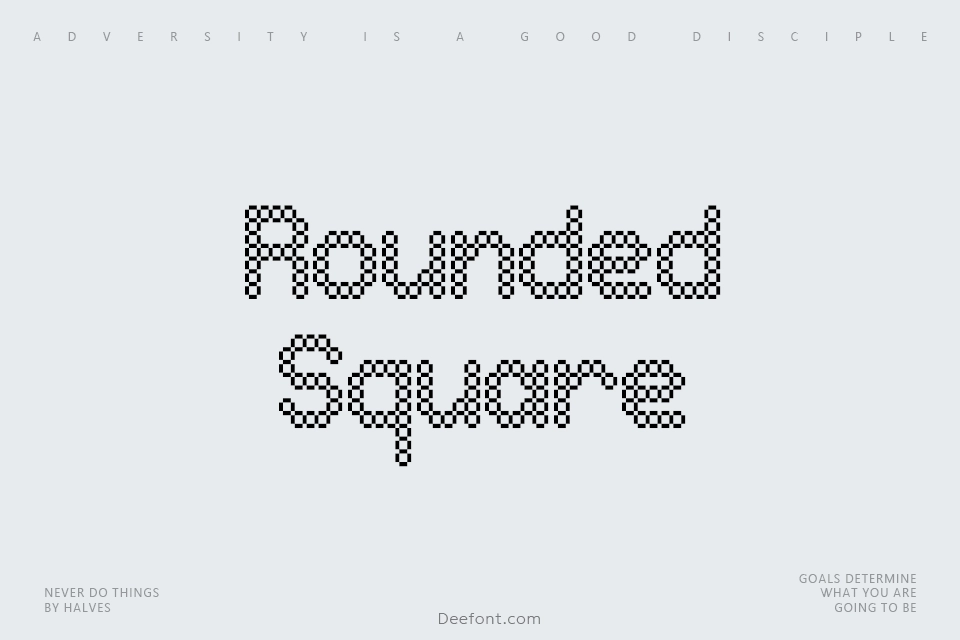 Rounded Square is a captivating pixelated bitmap font featuring characters crafted from circles derived from squares, creating a distinctive modern aesthetic. Designed by Donatien Polliand, this 22-pixel display font combines geometric precision with playful roundedness, making it perfect for eye-catching logos, brand identities, web designs, digital advertisements, and creative projects that demand attention. With its refined yet playful appearance, this font brings a unique pixelated charm to any design venture.