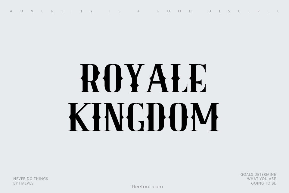 Royale Kingdom is a captivating vintage-style typeface designed with flourish ornaments and oldschool character. Perfect for adding authentic retro flair to logotypes, branding materials, stationery, t-shirt designs, greeting cards, and various creative projects. This decorative display font combines elegant embellishments with versatile versatility, making it an excellent choice for designers seeking timeless, distinctive typography with nostalgic charm and memorable visual impact.